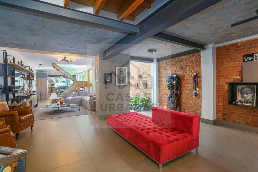 Casa completamente reformada em estilo industrial e semi mobiliada com 400 m². 3 suítes com ar-condicionado e armários planejados. Living 4 ambientes, home office, adega, lavabo. Cozinha com armários planejados, ilha com cooktop, churrasqueira e forno a lenha integrado. Living e cozinha com piso em porcelanato cimento queimado. Área íntima com piso em madeira. Área externa com solarium no rooftop. Área de serviço separada com dormitório e banheiro para funcionário. Vaga para 2 carros.